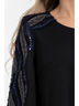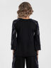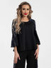 Блуза расклешенная к низу. Круглый вырез блузы обработан внутренней обтачкой. Втачные рукава дополнены нашитыми декоративными элементами.