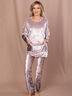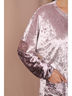 Стильный костюм, состоящий из свитшота и брюк, выполнен из бархатного трикотажного полотна розового цвета. Свитшот: круглый вырез горловины обработан внутренней обтачкой. Втачные рукава со спущенной линией проймы обработаны манжетами. По переду изделия накладные краманы. Брюки свободного силуэта, по низу брюк — манжеты. Верхняя часть брюк обработана поясом на резинке. Аксессуары в комплект не входят.
