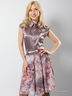 Приталенная блуза с воротом-стойкой и коротким рукавом застегивается на пуговицы.