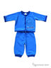Костюм состоит из штанишек и кофты. Штанишки на широком эластичном поясе с кулиской для более комфортной посадки. Кофта с длинными рукавами и округлым вырезом горловины. Застежка на кнопки для удобства одевания. Спереди модель декорирована принтом в виде дракона.