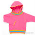 Детали: толстовка - длинный рукав; капюшон; один кармашек; брюки - отрезной пояс на резинке дополнен кулиской; два кармана; круглый вырез, низ толстовки и пояс брюк в виде трикотажной резинки с разноцветными полосами