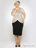 Стильный костюм, состоящий из блузы и классической юбки-футляра. Блуза с U-образным вырезом горловины. Короткие рукава. Низ блузы дополнен оригинальными драпировками.
