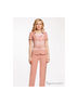 Замечательный костюм, состоящий из жакета, блузки, брюк и ремня. Жакет с короткими рукавами имеет V-образный вырез горловины, застегивается на 3 пуговицы. Модель украшает съемный ремень. Блуза с короткими рукавами и округлым вырезом горловины, декорирована оригинальным принтом. Брюки прямого кроя.