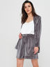 Костюм из фактурного бархата в полоску, состоит из жакета и шорт. Детали жакета: прямой силуэт, шалевый воротник, втачной рукав, плечи усиленны подплечниками. Шорты на притачном поясе, выполнены с наборкой по талии.