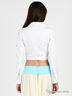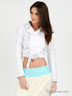 Стильная косуха из плотного трикотажа. В состав ткани входит шелковая нить, делающая ткань мягкой. Яркий подклад рукавов. На полочке и рукавах карманы на серебряных молниях. На воротнике клепки, позволяющие пристегивать лацканы. По нижней части изделия пришиты шлевки, поясок в комплекте.