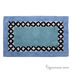 Яркие и необычные по форме предметы изготовлены из керамики и украшены изящным орнаментом в виде решетки. Низ предметов акцентирован широкой голубой полосой. Орнамент повторяется на шторке, коврике и жаккардовых полотенцах.