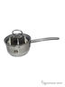 Нержавеющая сталь 18/10, трехслойное капсулированное дно методом диффузной сварки, индукция, стеклянная крышка с отверстием для выхода пара. Форма прямая. Сатиновая полировка внутри, зеркальная полоса снаружи, Евростандарт. Подходит для всех видов плит, для мытья в посудомоечной машине.