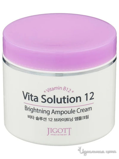 Ампульный крем для улучшения цвета лица Jigott Vita Solution 12 Brightening Ampoule Cream серии Vita Solution 12 с лакричным корнем и природными источниками витамина В12 улучшает цвет лица, разглаживает морщинки, уменьшает отечность, делая контур лица более четким. Крем Jigott Vita Solution выравнивает тон кожи, интенсивно увлажняет и восстанавливает здоровой баланс влаги в клетках, повышает эластичность кожи и делает лицо свежим и молодым.