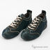 Синие джинсовые кроссовки. Прикреплен декоративный "болт"-застежка. Завязываются шнурками. Декоративный вдавленный и затеменный рисунок на внешней стороне ступни.