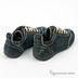 Синие джинсовые кроссовки. Прикреплен декоративный "болт"-застежка. Завязываются шнурками. Декоративный вдавленный и затеменный рисунок на внешней стороне ступни.