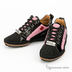 Яркие дизайнерские кроссовки из замши разных цветов, с отделкой лаковой кожей. Спереди шнуровка. фурнитура с фирменным логотипом. Высокая комбинированная подошва снизу имеет рифленую поверхность.