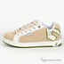 Стильные и удобные кроссовки бежевого из натурального нубука для активного отдыха. Перфорация на носочной части обуви позволяет обеспечить свободный поток воздуха. Язычок и воротник обуви сделаны с поролоновой прокладкой для еще большего комфорта. Оригинальная конструкция язычка позволяет завязывать шнуровку как над ним, так и под ним. Съемная стелька. Внешняя сторона обуви дополнена вставками из кожи. Подошва на толстой резине с прошивкой. В комплекте прилагается дополнительная пара шнурков белого цвета.