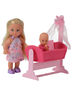 Розовая кроватка-качалка с балдахином – уютное гнездышко для сладких снов малыша. Куколка Еви покачивает кроватку, где маленький малыш видит радостные сны. Она очень любит ухаживать за ним! В набор входит множество аксессуаров для малыша. Когда малыш проснется, она покормит его из бутылочки, даст попробовать вкусное тыквенное пюре из тарелочки, а потом поиграет в забавные развивающие игры. Этот набор поможет ребенку научиться заботиться о младших деях.Комплект: кукла "Еви" 12см, пупс, люлька для пупса, предметы для кормления и игры с малышом. Внимание! Возможно проглатывание мелких деталей. Использовать только под непосредственным наблюдением взрослых.
