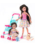 Какая веселая компания! Кукла Мила, кукла Вики и их дружелюбная собачка! Куда они собираются? Сегодня у них запланирован семейный ужин, и они идут в торговый центр за продуктами. Мила учит Вики правильно выбирать полезные продукты и объясняет, почему вредно кушать много сладостей. Кукла Мила научит этому и Вашу малышку! А когда они вернутся домой, Вики будет играть с милым рыжим щенком. Отличный вечер!Кукла Мила 23 см, кукла Вики 12 см, коляска, собачка, аксессуары (мишка и 2 палочки). Внимание! Возможно проглатывание мелких деталей. Использовать только под непосредственным наблюдением взрослых.