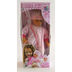 Кукла с мягким туловищем, голова, ножки и ручки из мягкого пластика. Озвучена, при каждом нажатии на живот кукла произносит слова "мама" "папа", плачет, смеётся. Работает от батареек.