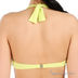 Раздельный купальник, состоящий из плавок-слипов низкой посадки и удобного бюстгальтера. Бюстгальтер с бретелью через шею и плотными чашками на косточках. Купальник декорирован бисером, пайетками и стеклярусом.