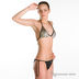 Стильный купальник-бикини с жесткими чашечками (push-up) с лентами-завязками на плавках и лифе. Плавки однотонные c двойной подкладкой для поддержания пресса, декорированные логотипом производителя из страз. Чашечки-треугольники с расцветкой "пятна леопарда" на лентах-завязках, расшитые черными и перламутровыми пайетками.