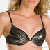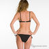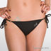 Стильный купальник-бикини с жесткими чашечками (push-up) и с лентами-завязками на плавках. Плавки на завязках с бусинами в тон лифа, декорированные логотипом производителя. Лиф украшен сетчатой тканью с очень эффектными паетками на чашечках лифа. На лифе регулируемые завязки-трансформеры, которые можно пристегнуть на спине или завязать на шее.