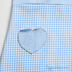 Расклешенная модель. Лямка на шее на защелке. Эластичная ткань будет быстро сохнуть после стирки. Два накладных кармана в виде сердчек.
