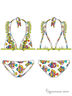 Стильный раздельный купальник из яркой, приятной на ощупь ткани. Топ с бретель-петлей. Застежка на спине. Топ декорирован оборками с бахромой. Плавки-слипы со средними по толщине бочками.