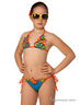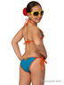 Потрясающий раздельный купальник из приятного на ощупь материала. Топ в виде двух треугольников с бретель-петлей из узкой ленты, завязанной на шее. С помощью узкой ленты завязывается на спине. Плавки-бикини с низкой посадкой на талии. Завязки на боках. Топ и плавки декорированы восхитительными пришитыми бабочками.