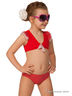 Яркий раздельный купальник выполнен из великолепного материала. Широкий V-образный вырез горловины. Крохотные рукава-крылышки. Полочка дополнена декоративными завязками. Спинка декорирована оригинальным рисунком и оборками. Плавки со средней посадкой по линии талии. Широкие бочки.