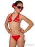 Потрясающий раздельный купальник из приятного на ощупь материала. Топ в виде двух треугольников в с широкими завязками на шее и узкими - на спине. Декорирован оригинальным рисунком и изящными оборками. Плавки с низкой линией талии. Широкие завязки на боках.