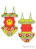 Красочный купальник-трикини из гладкого материала с замечательным принтом. Фигурный вырез горловины. Тонкие бретели. Верхняя и нижняя часть купальника соединяются с помощью оригинального веселого цветка.