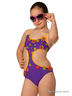 Замечательный купальник-трикини из качественного материала. Фигурный вырез горловины. Тонкие бретели. Узкая полоса спереди соединяет верхнюю и нижнюю части купальника. Полочка и спинка декорированы яркими, красочными звездами.