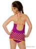Замечательный купальник-платье выполнен из яркой, гладкой ткани с оригинальными принтами. Ворот бретель-петля с завязками на шее. Застежка на спине. Отрезная юбка с декоративным бантиком.
