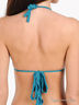 Элегантный купальник из тонкой эластичной ткани с трикотажной подкладкой. Лиф с мягкими подвижными чашечками-шторками завязывается на бретели на спине и на шее. Трусики-слипы средней посадки с декоративными завязками по бокам.