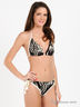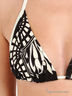 Элегантный купальник из тонкой эластичной ткани с трикотажной подкладкой. Лиф с мягкими подвижными чашечками-шторками завязывается на бретели на спине и на шее. Трусики-слипы средней посадки с декоративными завязками по бокам.