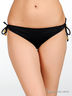 Раздельный купальник. Бюстгальтер с плотными чашечками на косточках, на тонких, регулируемых по длине бретелях. Застежка на замочек. Трусы-слип средней посадки с завязками. Изделие декорировано стразами.