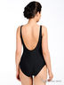 Купальник сплошной со встроенными плотными чашечками на косточках. Широкие бретели не регулируются по длине. Глубокий вырез спинки.