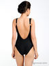 Купальник сплошной со встроенными плотными чашечками на косточках. Широкие бретели регулируются по длине, декорированы бусинами. Глубокий вырез спинки.