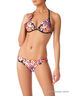 Элегантная пляжная двойка! Бюст – дублированные треугольники с боковыми корректорами, фиксируются на теле тонкими завязками. Плавки комфортной посадки со средним бочком. Великолепный чёрный купальник с яркими тропическими цветами выполнен из блестящей лайкры с использованием метода детального размещения принта и тончайшего серебряного фольгирования.