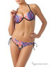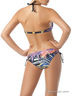 Стильный купальный костюм из двух предметов. Бюст – дублированные чашечки на каркасной поддержке с дополнительными корректорами внутри, с тонкими завязками на шее и застёжкой на спине. Плавки комфортной посадки с открытыми бочками под завязки в кольцо. Оригинальный принт – синтезированный рисунок в ярких, динамичных цветах, усилен сияющим эффектом блестящей лайкры от Carvico.
