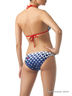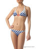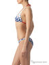 Стильный раздельный купальник из двух предметов. Бюст – мягкие подвижные треугольники со съёмными корректорами внутри, соединяются красным пластиковым кольцом по центру. Бюст фиксируется элегантными галстучными завязками на шее и плоскими, контрастного цвета завязками на спине. Плавки комфортной посадки с ультраузким бочком. Модель выполнена в уникальном принте 'Миллион мотыльков' в классическом сочетании триколора.