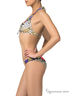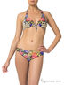 Аккуратный раздельный купальник. Бюст – мягкие вместительные чашечки на каркасной поддержке со съёмными вставками-корректорами, элегантными галстучными завязками на шею и фирменной застёжкой на спине. Объём под грудью легко корректируется регулировкой по центру. Плавки комфортной посадки со средним бочком. Модель выполнена из деликатной микрофибры в технике детального расположения принта 'Леопард с цветами' в коричневых тонах.