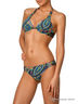 Стильный раздельный купальник из двух предметов. Бюст - мягкие анатомические чашечки на каркасной поддержке, фиксируются широкими галстучными завязками на шее и застёжкой на спине. Средне-низкие плавочки комфортной посадки со средним бочком. Весь купальник выполнен из деликатной микрофибры в технике поместного принтования и дополнен ярким акцентом подкладки чистого красного цвета.