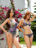 Популярный раздельный купальник для дам с аккуратными формами. Бюст - вместительные чашки анатомического кроя, усиленные каркасной поддержкой с дополнительными завязками, которые регулируют линию декольте. Плавки комфортной посадки со средним бочком. Купальник выполнен в стиле поместного принтования из ткани Carvico Lucidi - Shiny. Принт "Райские кущи" и украшен пластиковыми бусинами комбинированного цвета.