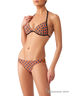Молодёжная пляжная двойка. Бюст – аккуратные дублированные треугольники с дополнительными корректорами и лёгким эффектом push up – фиксируется на теле тонкими завязками. Плавки комфортной заниженной посадки с узким бочком. Купальник выполнен из деликатной микрофибры в актуальном графическом принте и дополнен модными золотыми пряжками с контрастной шнуровкой по бокам изделия. Модный и экстравагантный комплект отлично отражает тенденции сезона.
