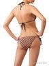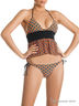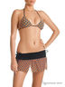 Молодёжная пляжная тройка. Купальник мини-бикини, регулируемый тонкими завязками, супер-мини-юбка на широком гофрированном поясе из деликатной микрофибры и мягкой эластичной сетки. Актуальный графический принт, вкусный апельсиновый оттенок в контрасте с классикой белого и чёрного, изысканный мини-купальник.