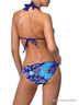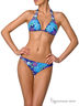 Стильный раздельный купальник из двух предметов. Бюст - мягкие подвижные треугольники, фиксируются на шее широкими галстучными завязками и тонкой завязкой под грудью. Средне-низкие плавочки комфортной посадки со средним бочком. Весь купальник выполнен из деликатной микрофибры в технике поместного принтования, что позволяет передать сложную глубину рисунка до полутонов.