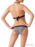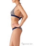 Элегантный комбинированный купальник из двух предметов. Принтованный бюст – фиксированные треугольники с анатомической вытачкой, на широких галстучных завязках и плотном эластичном поясе под грудью. Однотонные плавки-танго комфортной посадки на широком поясе с декоративным съёмным галстуком на боку. Модель выполнена из деликатной микрофибры в изящной комбинации принта и однотона.