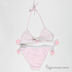 Оригинальный купальник из тонкой шелковистой ткани. Завязки декорированы оригинальными тканевыми цветочками. В комплект входит прозрачная сумочка с застежкой на кнопку.