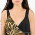 Элегантный слитный купальник с полуоткрытой спиной. Левая и правая полочки пристрочены к внутренней сеточке, выполнены внахлест и декорированы крупной металлической брошью золотистого цвета. Брошь не снимается и зафиксирована маленькой резинкой с внутренней стороны. Невидимые чашечки, выполненные из тонкого и плотного материала, так же пристрочены к внутренней сеточке и придают груди красивую форму.