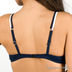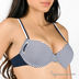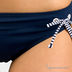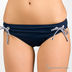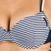 Стильный раздельный купальник в морском стиле. Формованные чашечки лифа имеют тонкую и плотную прокладку, боковинки чашечек украшены декоративной вставкой. Бретели, раздвоенные спереди, регулируются по длине. Плавки со средней линией талии и с закрытыми ягодицами также декорированы по бокам вставками-бантиками из полосатой ткани.