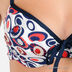 Купальник раздельный из коллекции "Pin Up": Бюстгальтер на косточках с плотными чашечками и с тонкими бретелями, завязывающимися на спине и на шее. Трусы-слип средней посадки. Изделие декорировано бисером.