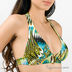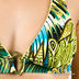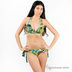 Яркий купальник с привлекательным принтом. Лиф на завязках с мягкими треугольными чашечками и передняя часть плавок декорированы стразами золотистого и голубого цветов. Чашечки лифа имеют съемные тонкие и плотные вставки. Плавки с закрытыми ягодицами завязываются по бокам и украшены декоративными кольцами из прозрачного пластика с крупными блестками золотистого цвета внутри. Чашечки лифа и плавки продублированы быстросохнущей подкладкой.